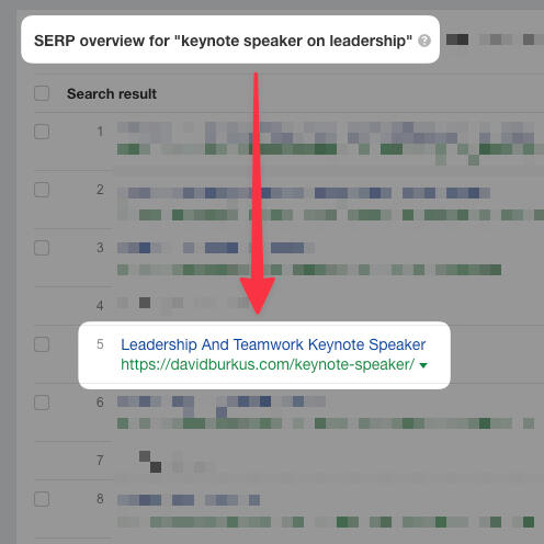 Your most valuable keywords, such as "keynote speaker on leadership" will be at the top of Google search.